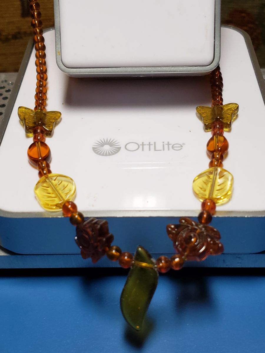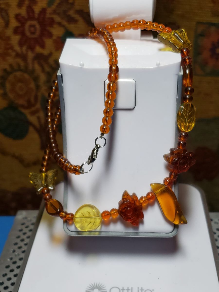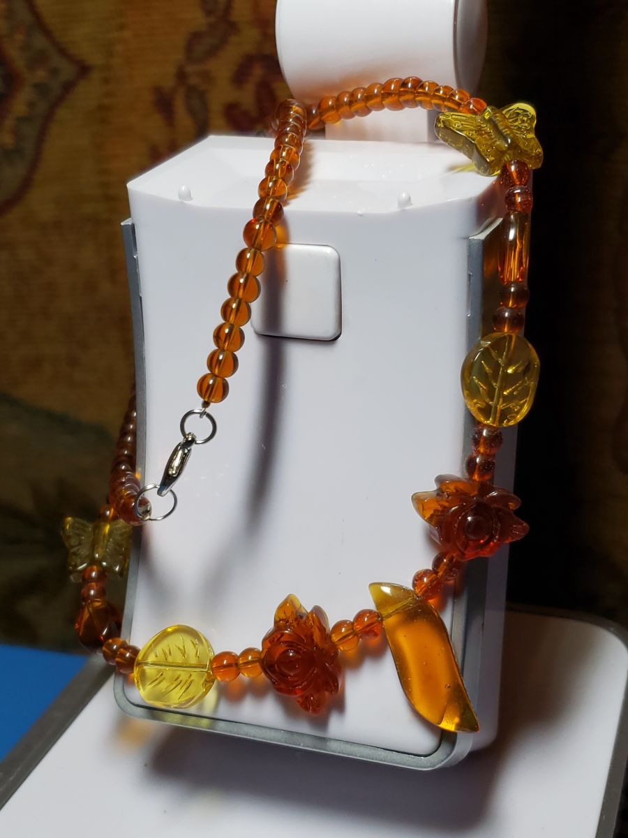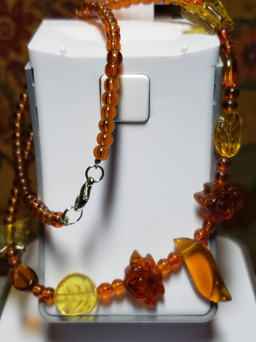 - Graduated amber beads in varying sizes and hues